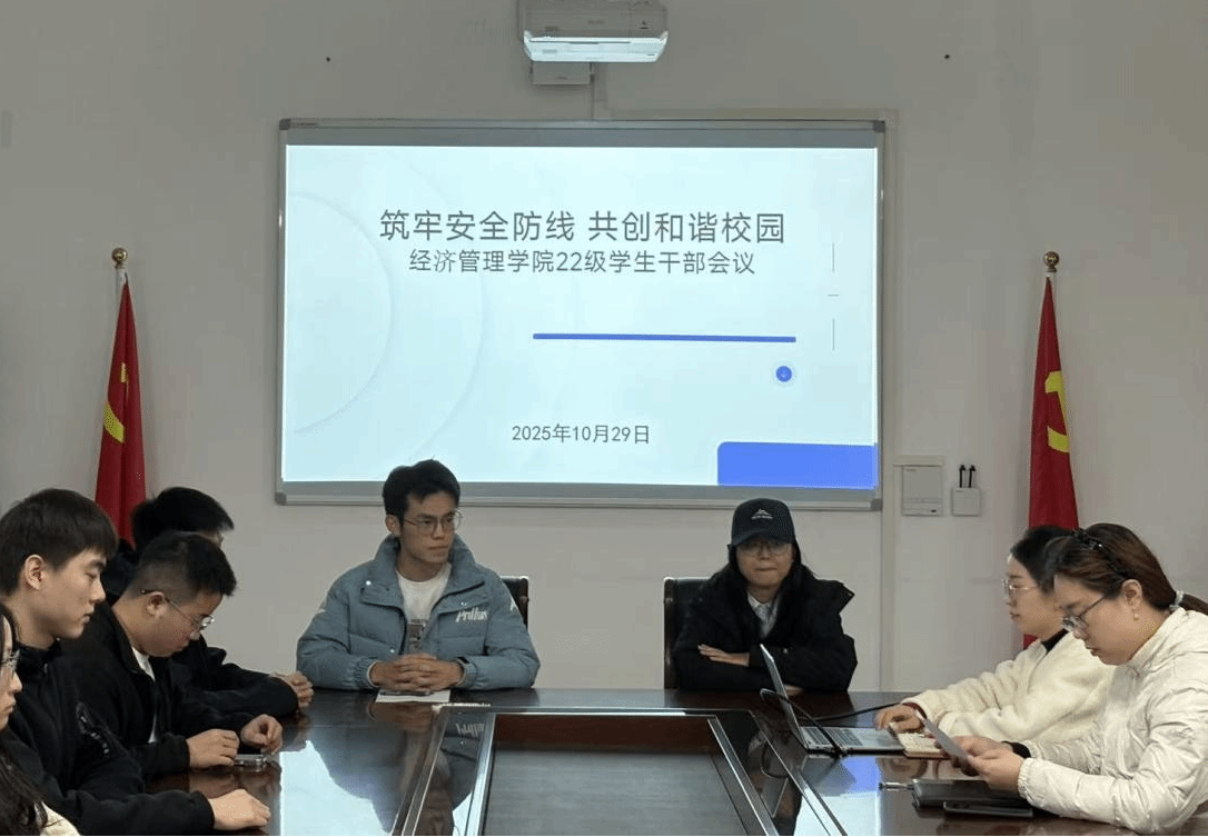 2025年10月29日下午,经济管理学院22级辅导员吴笑、陈金召集全体22级班干部召开专题会议,围绕日常安全管理工作及防范诈骗、拒绝灰产作出重点部署,进一步明确班干部安全责任,凝聚班级安全防护合力。